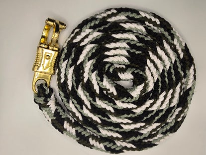 Stevige lijn van ruim 2 meter zonder handvat, met een goudkleurige paniekhaak.