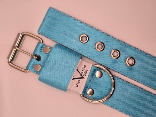 Sterk, stijlvol en verrassend comfortabel! Deze halsband, gemaakt van stevig autogordelmateriaal en helder turqouise, is bijna onverwoestbaar en toch soepel voor dagelijks draagcomfort. Kleurvast en slijtvast, dus hij blijft er lang als nieuw uitzien. Perfect voor honden die net zo krachtig zijn als hun uitstraling!