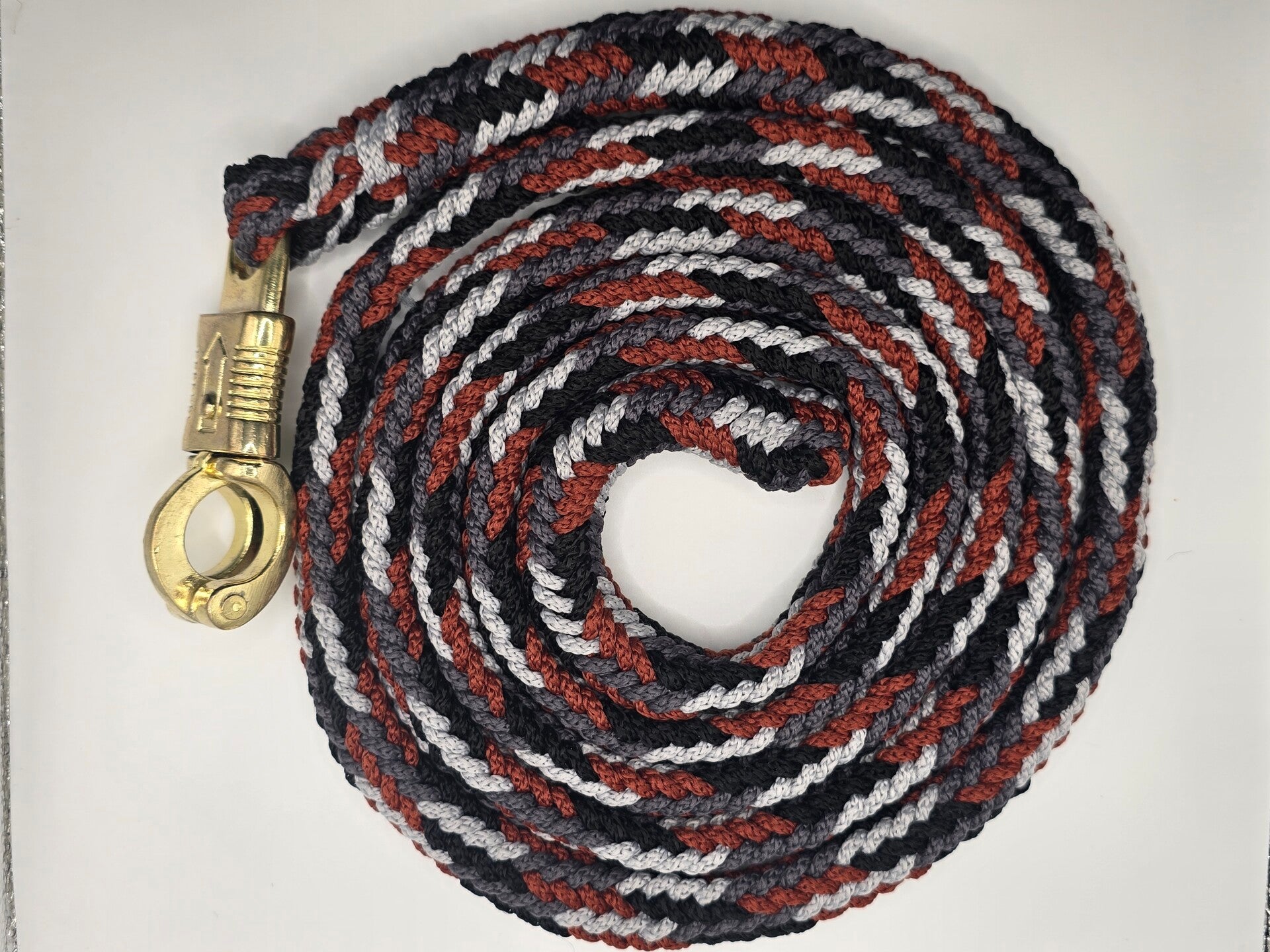 Stevige lijn van ruim 2 meter zonder handvat, met een goudkleurige paniekhaak.